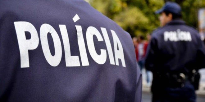 Um dos agentes da PSP sofreu ferimentos nas costas e foi transportado para o hospital.
