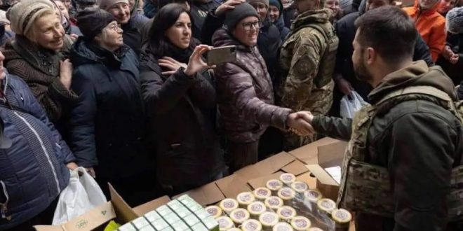 “Temos pessoas fortes, gentis e invencíveis. Mais uma vez eu estava convencido disso”, escreveu Zelensky no post do Twitter a acompanhar as fotos onde se encontra a distribuir os produtos oferecidos pelos portugueses. As fotos são da Assessoria de Imprensa Presidencial ucrâniana.