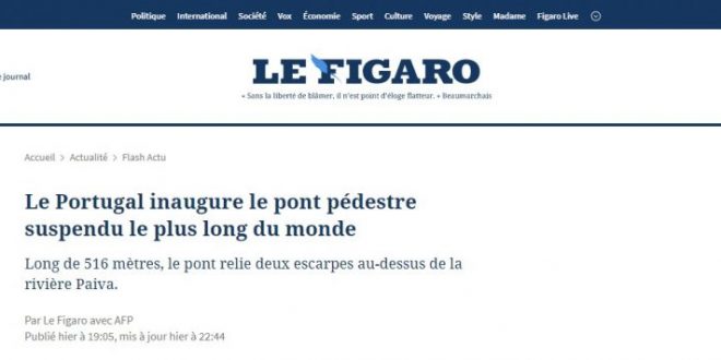 Entre os britânicos, o Guardian e o Daily Mail também deram conta da inauguração da Ponte 516 Arouca, assim como os franceses Le Fígaro e France Info.