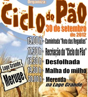 O “Ciclo do Pão” passa, entretanto pela lavra da terra com os bois e o arado, o semear e o sachar do milho, o cortar da bandeira e o cortar do milho. Para as 18h30 está marcada a recriação da tradicional desfolhada, protagonizada pelo Rancho Folclórico “Camponesas do Alva” de Avô e a malha do milho, recriada pelos malhadores tradicionais de Meruge, que terá como palco a tão característica Lage Grande do tempo dos nossos avós.