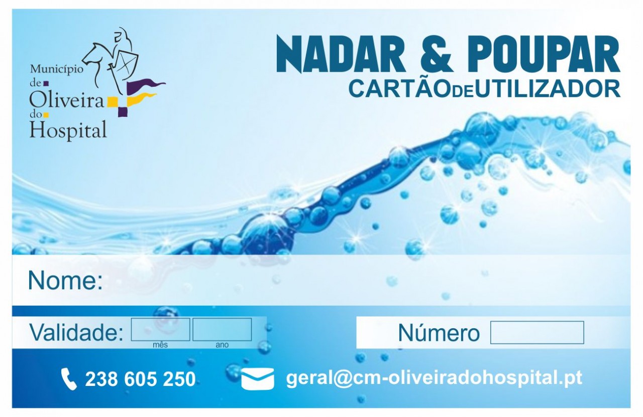 O Município de Oliveira do Hospital (MOH) vai lançar no próximo mês de Abril um cartão gratuito que visa estimular a prática da natação em todos os escalões etários. O projecto “Nadar & Poupar” é uma espécie de cartão de pontos, que estará disponível a partir do próximo dia 6, destinado a munícipes com idade igual ou superior a 30 anos que a partir da oitava utilização proporciona duas utilizações gratuitas da piscina municipal coberta.
