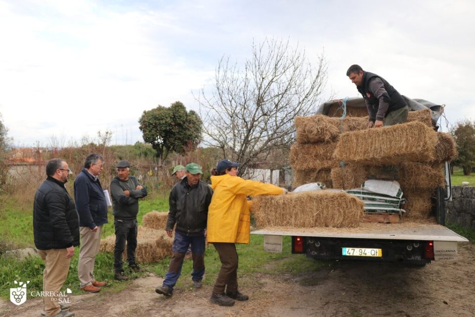 No total, foram distribuídos 400 fardos de palha e 150 sacos de ração, de forma proporcional, por 37 produtores de ovinos e caprinos, equídeos, bovinos e suínos das freguesias de Cabanas de Viriato, Carregal do Sal e Oliveira do Conde, as mais afectadas pelas chamas.