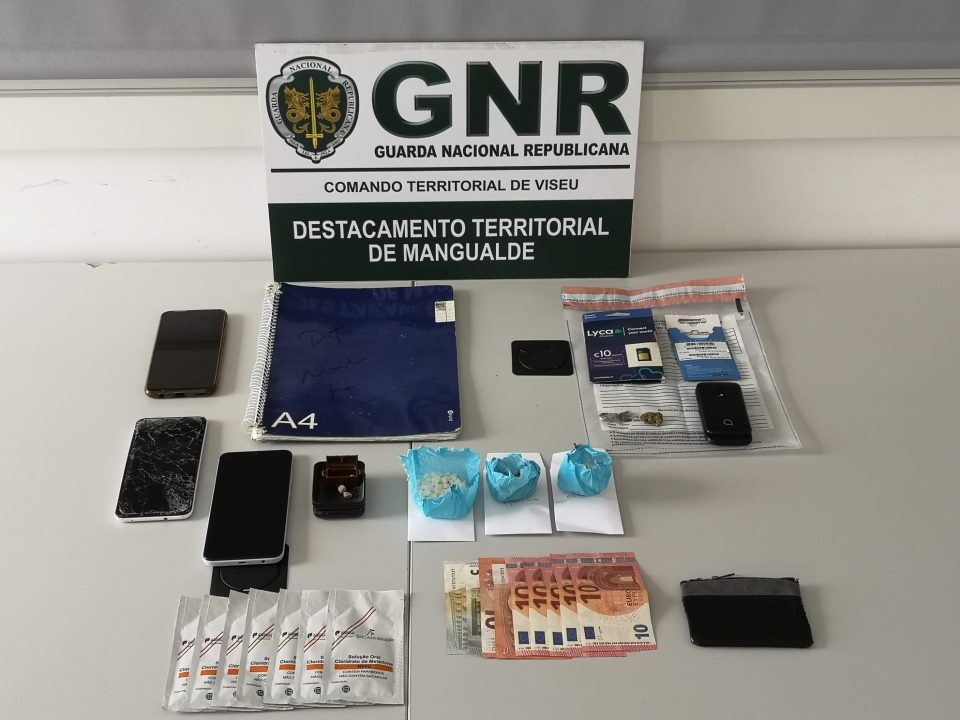 Neste âmbito, foi dado cumprimento a três mandados de busca domiciliária e um mandado de busca em veículo, que culminaram com apreensão do seguinte material:120 doses de heroína; 150 doses de cocaína; Sete doses de haxixe; Sete doses de canábis; Quatro telemóveis; Diverso material de corte e embalamento de produtos estupefacientes.