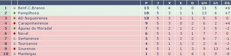 Ao fim de cinco jornadas, a Associação Desportiva Nogueirense soma três vitórias, um empate e uma derrota. Uma prestação que vale à equipa de Nogueira do Cravo o 3º lugar na tabela classificativa, onde soma 10 pontos, menos três que a equipa líder do Campeonato Nacional de Seniores, o Benfica de Castelo Branco. Na última jornada, disputada no domingo, o Nogueirense recebeu e venceu por 1-0 o Carapinheirense. Resultado igual tinha sido conseguido pela equipa de Nogueira do Cravo na jornada 4, frente à vizinha equipa do Tourizense.