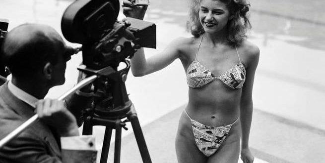 Foto: Modelo Micheline Bernardini pousando para foto com o primeiro biquíni da história