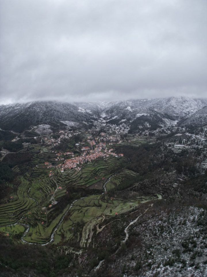 A localidade de Loriga, no concelho de Seia, conhecida como “Princesa da Serra da Estrela”, ficou hoje de tarde coberta por um manto branco que levou mesmo ao corte temporário da Estrada Nacional 231, que liga Seia à Covilhã, de forma a permitir aos limpa-neves desobstruírem a via. As imagens: