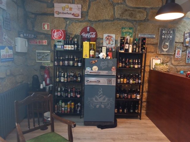Enquanto apreciamos a decoração “vintage” do estabelecimento, Cláudio continua a trabalhar afincadamente e vai dizendo para estarmos à vontade. Nas paredes destaca-se a decoração com placas. Muitas placas. De matrículas, publicidade a bebidas, enfim de tudo um pouco. “Muitas eu já tinha. Fui comprando ao longo dos tempos, outras são ofertas”, explica, enquanto, cuida do cabelo de um cliente que se encontra sentado numa cadeira, também ela a fazer recordar outros tempos, embora o material profissional seja de ponta. Alguns quadros também têm o seu espaço. E a um canto sobressaem variedades de cervejas, desde as famosas trapistas belgas, passando por alemães ou dinamarquesas. A máquina de café e chá, bem como os refrigerantes também não foram esquecidos.