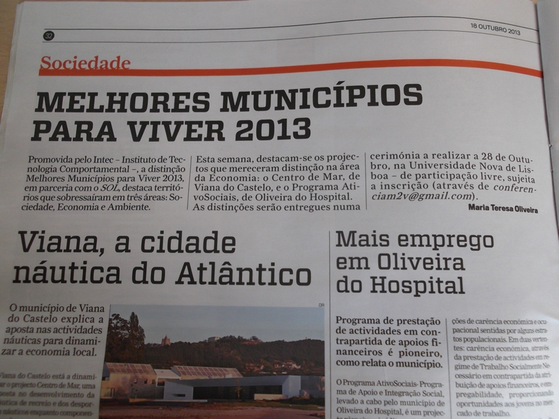 A distinção foi divulgada na edição de 18 de outubro, ainda nas bancas, do jornal “Sol” que destaca o programa AtivoSociais – Programa de Apoio e Integração Social dinamizado pelo Município de Oliveira do Hospital e que se destina a promover a empregabilidade.