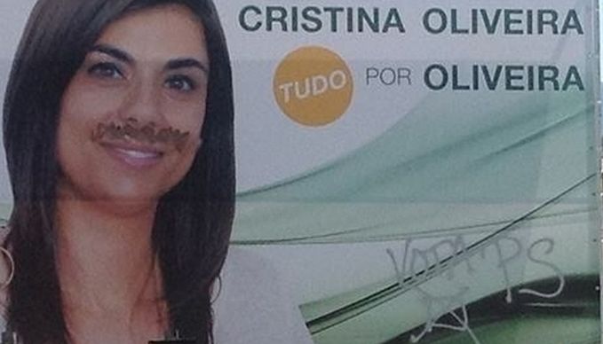 No painel com que o PSD dá a conhecer o rosto da candidata Cristina Oliveira que se propõe a fazer “tudo por Oliveira”, foi inscrita manualmente a mensagem “Vota PS”, assim como também foi adicionado um “bigode” ao rosto do outdoor. O ato de reconhecido vandalismo não caiu bem junto da candidatura do PSD que, como apurou este jornal digital, apresentou ontem queixa no posto local da GNR.