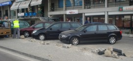 Uma viatura ligeira embateu, perto das 2h00 da madrugada de hoje, contra os pilaretes localizados no passeio da Rua do Ameal, causando danos em duas viaturas estacionadas.