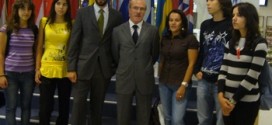 Na imagem, quatro alunos da Escola Secundária de Oliveira do Hospital (ESOH), acompanhados por Cristina Borges, do Conselho Directivo, encontram-se na sede do...