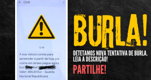 A Guarda Nacional Republicana esclareceu hoje que tomou conhecimento da circulação de uma mensagem de telemóvel fraudulenta em seu nome. A GNR explica em comunicado que várias pessoas têm recebido, no seu telemóvel a mensagem “A sua viatura consta para apreender a partir de hoje por coima em atraso pague agora” indicando em …