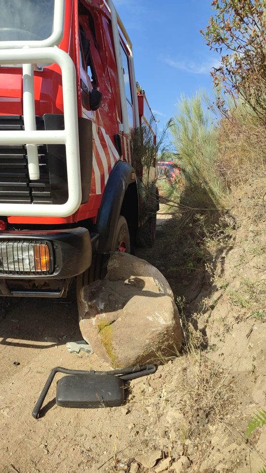 Os Bombeiros de Lagares da Beira ficaram com um veículo inoperacional ontem quando o camião que seguia por um estradão para iniciar trabalhos foi atingido do lado da porta do condutor por uma pedra de grandes dimensões. A equipa, que se encontra bem, seguia para combater o incêndio rural em Pedras Ruivas, na freguesia de Seixo da beira, concelho de Oliveira do Hospital. “A equipa encontra-se bem, sem qualquer ferimento, o veículo encontra-se inoperacional!”, termina a nota.