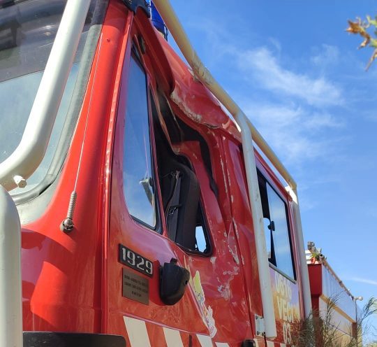Os Bombeiros de Lagares da Beira ficaram com um veículo inoperacional ontem quando o camião que seguia por um estradão para iniciar trabalhos foi atingido do lado da porta do condutor por uma pedra de grandes dimensões. A equipa, que se encontra bem, seguia para combater o incêndio rural em Pedras Ruivas, na freguesia de Seixo da beira, concelho de Oliveira do Hospital. “A equipa encontra-se bem, sem qualquer ferimento, o veículo encontra-se inoperacional!”, termina a nota.