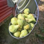 Dizem os entendidos que o sabor, textura suculenta e formato são inigualáveis. O certo é que atraem as abelhas, daqueles que convém manter por longe, como é o caso da asiática que esvoaçam por entre as ramagens enquanto prossegue a labuta dos trabalhadores, aparentemente indiferentes (mas tomando as devidas cautelas).Convém não repetir a experiência desagradável que teve o Luís Nunes que foi picado num terreno em Celorico da Beira há cerca de um mês. Refere à nossa reportagem que andava com um trator a capinar e foi atacado por um enxame de abelhas que o picaram no tronco e na cabeça, tendo sido transportado de urgência para o hospital da Guarda, depois de ter desmaiado. ”Fiquei que parecia um bicho”, recorda essa má experiência, ao mesmo tempo que aponta para aquilo que parece um ninho desses insetos lá no cimo de uma árvore. ”Já disse ao Sr. Nuno para mandar vir os técnicos especialistas retirar esse ninho que pode ser perigoso para a população”.