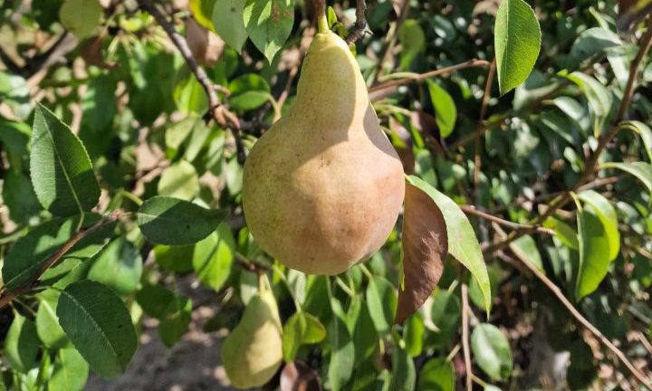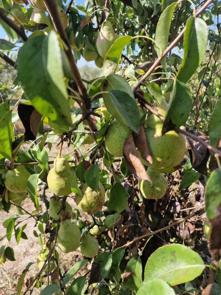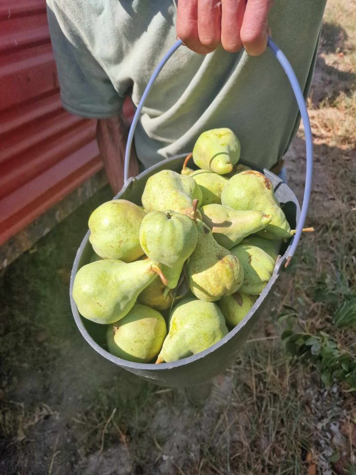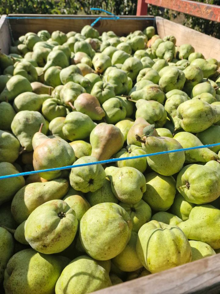 O empresário Nuno Tavares dá instruções para que as peras que se encontram no chão sejam igualmente colhidas. Ali tudo se aproveita, tudo se transforma. ”Ainda estamos a estudar o destino a dar-lhes. Ou para compota ou para tentarmos fazer um produto mais gourmet. Esta é uma pera que o meu pai descobriu há uns anos numa árvore e achou que era diferentes das outras. Na altura, levou-as ao Instituto de Investigação Agrícola e patenteou-a como Pereira Tavares, numa homenagem à minha falecida avó. Vamos aumentar a produção, tudo tem de ser feito gradualmente. Mas é curioso sabermos que é única nos pais e no Mundo”.