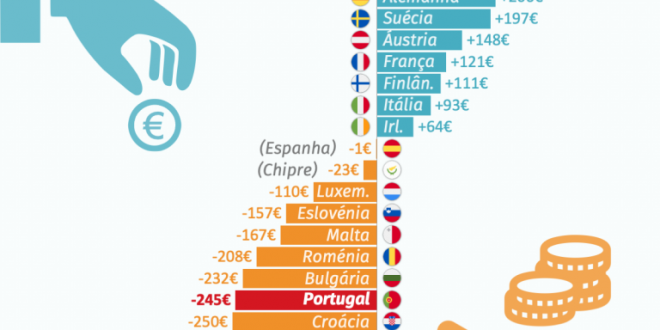 Portugal beneficia mais do que aquilo que contribui para o orçamento da União Europeia. Em média, Portugal beneficiou, em termos líquidos, anualmente, de 245 euros por habitante dos fundos europeus. As contribuições médias anuais de 179 euros por português nos últimos cinco anos para o orçamento da UE foram largamente compensadas por 424 euros por habitante recebidos através de fundos comunitários. Corresponde a um saldo líquido de quase 13 mil milhões de euros de benefício neste período.