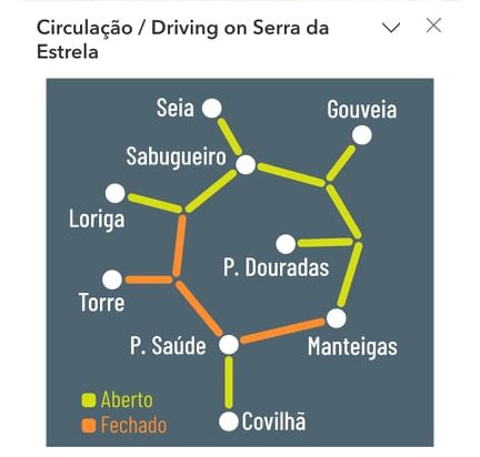 A estrada Piornos-Torre-Lagoa Comprida, na serra da Estrela, foi encerrada ao trânsito às 19h15 desta quarta-feira devido à queda de neve, disse fonte do Comando Distrital de Operações de Socorro (CDOS) de Castelo Branco. De acordo com a mesma fonte, o fecho da Estrada Nacional 338 abrange os troços Piornos/Cruzamento da Torre (troço 11), Cruzamento da Torre/Torre (12) e Lagoa Comprida/Cruzamento da Torre (13). Para já não há previsões para a reabertura dos troços que estão encerrados à circulação automóvel.