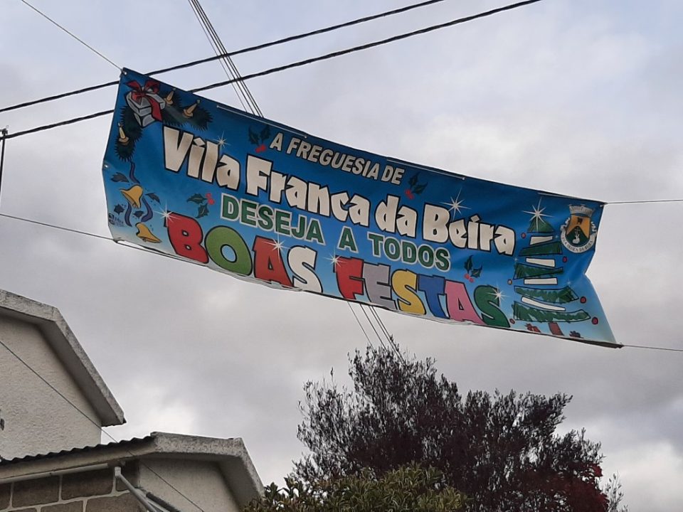 Comecemos este “Roteiro” Vilafranquense a olhar para o largo e colorido Panal colocado ao alto no cruzamento principal, na Estrada Nova, em que se lê:- “A Freguesia de Vila Franca da Beira deseja a todos Boas Festas”. Está feita um saudação muito Franca a quem entre ou saia da Povoação ou passe na Estrada.
