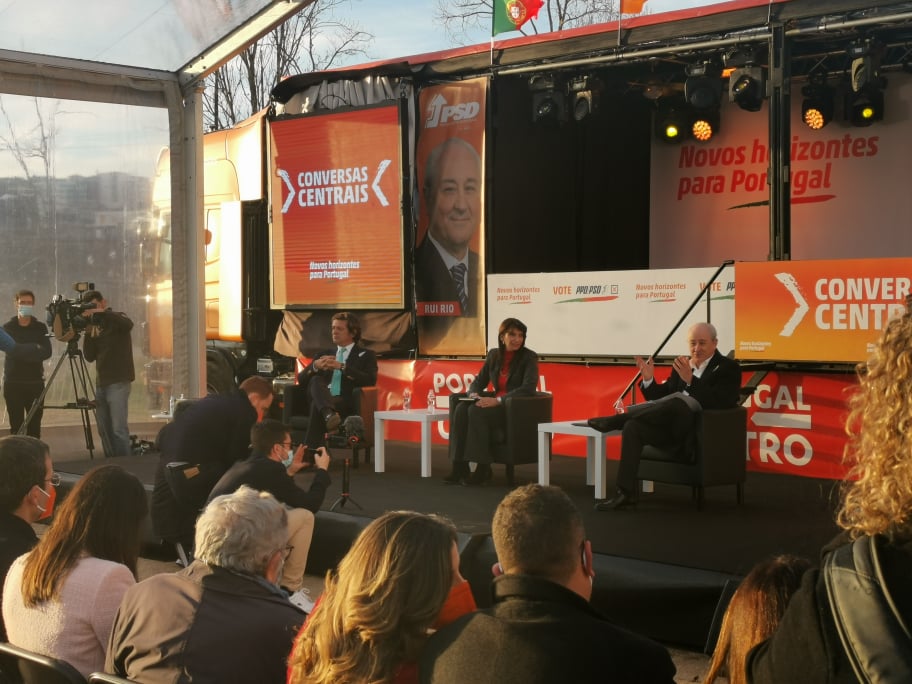 “Conversas Centrais”, desta vez, sobre o ambiente. O debate foi moderado pela cabeça de lista dos sociais-democratas por Coimbra, Mónica Quintela e Rui Rio aproveitou para frisar que o PSD olha para “questões do ambiente com o respeito necessário e, nesta temática, o presidente do PSD apontou duas “novas medidas” do programa do PSD que disse serem “relevantes e inovadoras”, designadamente a colocação no código da contratação publica a questão ambiental e os planos municipais de descarbonização.