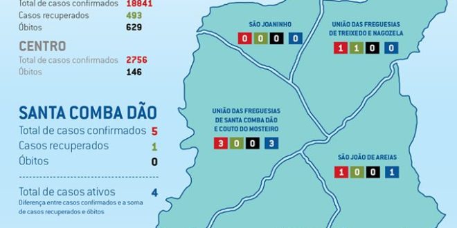 A Câmara Municipal de Santa Comba Dão informou hoje o quinto caso positivo da COVID-19 no concelho. Mas, ao mesmo tempo, a autarquia deu também a conhecer que existe já um paciente no município que venceu o novo coronavírus. Há também quatro casos em vigilância activa. “Clarifica ainda, que as informações prestadas sobre este assunto, nos canais oficiais do município, sê-lo-ão apenas, após confirmação oficial dos dados pelas entidades competentes”, frisa a autarquia.