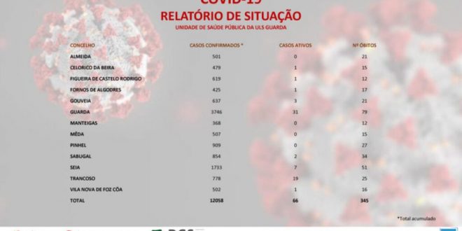 O concelho de Seia somava ontem sete infecções activas de covid-19, enquanto em Trancoso o número de casos está num total de 19. Os dados constam no mais recente boletim da Unidade Local de Saúde (ULS) da Guarda que indica, ainda, que no distrito estão activos 66 casos. Almeida, Manteigas, Mêda e Pinhel não registam infecções activas. Celorico da Beira, Figueira de Castelo Rodrigo, Fornos de Algodres e Vila Nova de Foz Côa registam um caso cada. Guarda contabiliza 31, Sabugal conta com dois e Gouveia tem três casos. Segundo a ULS da Guarda, 61 pessoas estão a recuperar no domicílio e cinco pessoas estão internadas, duas das quais em Unidades de Cuidados Intensivos