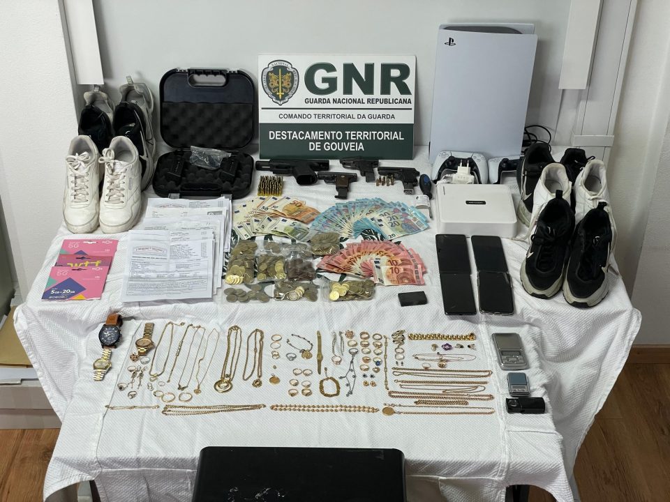 Das buscas resultou a apreensão de uma grande quantidade de peças em ouro, avaliadas em cerca de 32 mil euros, bem como documentos relacionados com transacções e penhoras de objectos em ouro. Foram ainda apreendidas cinco armas de fogo de calibres 6,35 mm e .22 mm, cem munições, 1085 euros em numerário, duas viaturas e diversos objectos associados à actividade criminosa, incluindo telemóveis e instrumentos para pesagem e análise de metais preciosos. A polícia recolheu também 20 doses de haxixe.