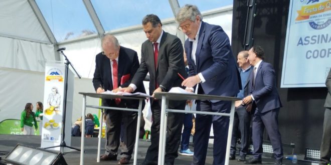 A CM de Oliveira do Hospital assinou hoje, após a cerimónia de abertura da Festa do Queijo Serra da Estrela de 2026, um protocolo de colaboração com o Sport Lisboa e Benfica que vai permitir plantar anualmente 10 mil árvores autóctones durante os próximos cinco anos, num total de 50 mil árvores. O documento foi assinado pelo presidente da autarquia oliveirense, José Francisco Rolo, e pelos dirigentes do clube da Luz, Domingos Almeida e Manuel Brito. O acordo prevê a entrega das árvores autóctones, que posteriormente serão plantadas nas zonas ardidas do concelho, com a colaboração da comunidade escolar.