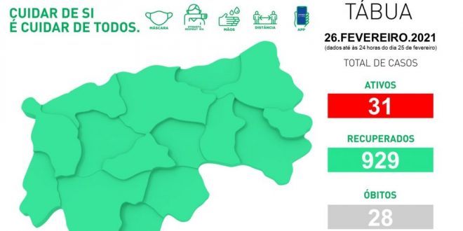 Tábua registou um aumento de casos activos no concelho, com seis novas infecções nos últimos três dias e apenas um recuperado. Neste momento, Tábua tem 31 casos activos (tinha 26 na terça-feira), 929 recuperados e mantém os 28 óbitos.