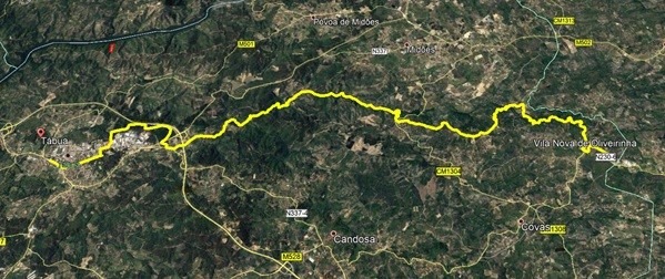 O percurso desenvolve-se numa extensão total de cerca de 17 km, ao longo da margem do rio de Cavalos, desde o centro da vila de Tábua, no Largo Senhor dos Milagres, até ao limite nascente do concelho, na aldeia de Vila Nova de Oliveirinha, passando por diversas povoações, como Seixos Alvos, Varzielas, Vale de Gaios, São Geraldo e Ribeira, tendo a intervenção proposta o objectivo de melhorar as condições de conforto e segurança de quem percorre este percurso.