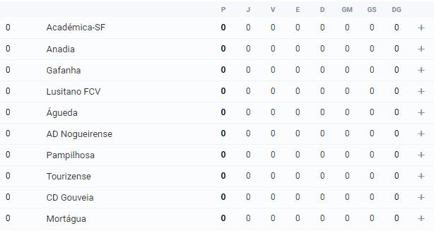 Grupo D do Campeonato Nacional Prio onde se encontra a AD Nogueirense