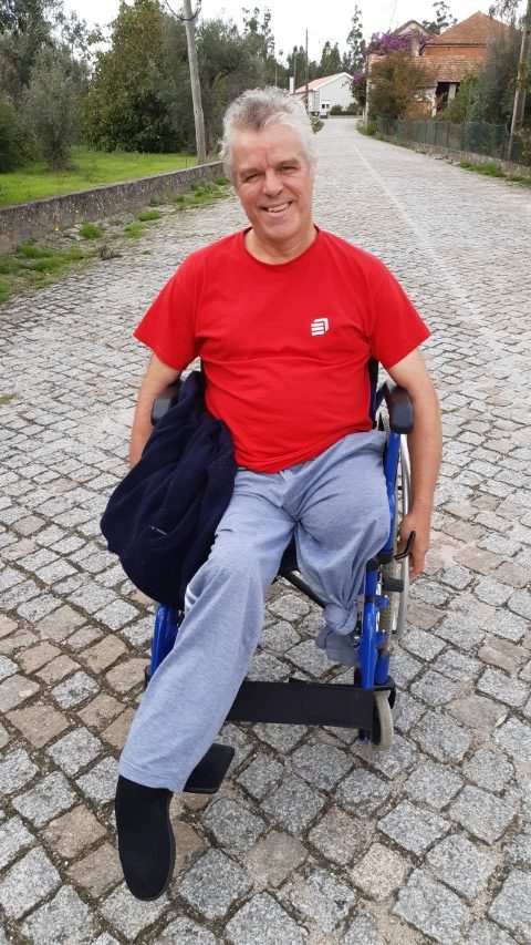 Voltamos a vê-lo agora confinado a uma cadeira de rodas para se deslocar. Dependente dos seus Familiares que o acompanham com zelo e lhe vão providenciar uma cadeira de rodas eléctrica para lhe facilitar a mobilidade.